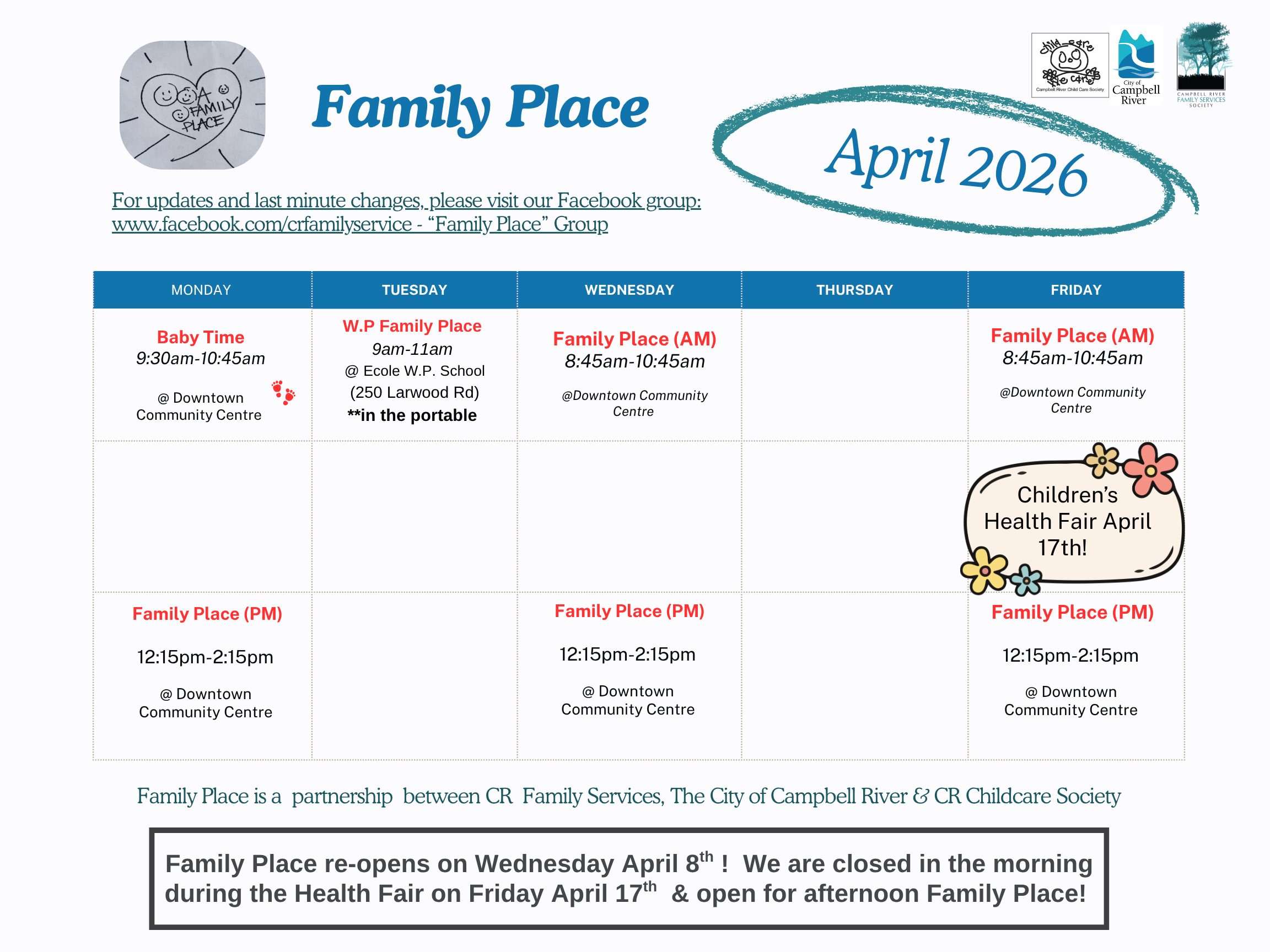 Community Calendars Family Place Calendar CR Family Services Calendar CR Library Calendar Laichwiltach "The Gathering Place" Calendar Strong Start Calendar City Of Campbell River Child and Youth Family Calendar